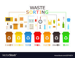 Bahan buangan diasingkan mengikut jenis yang boleh dikitar semula dan tidak boleh dikitar semula.